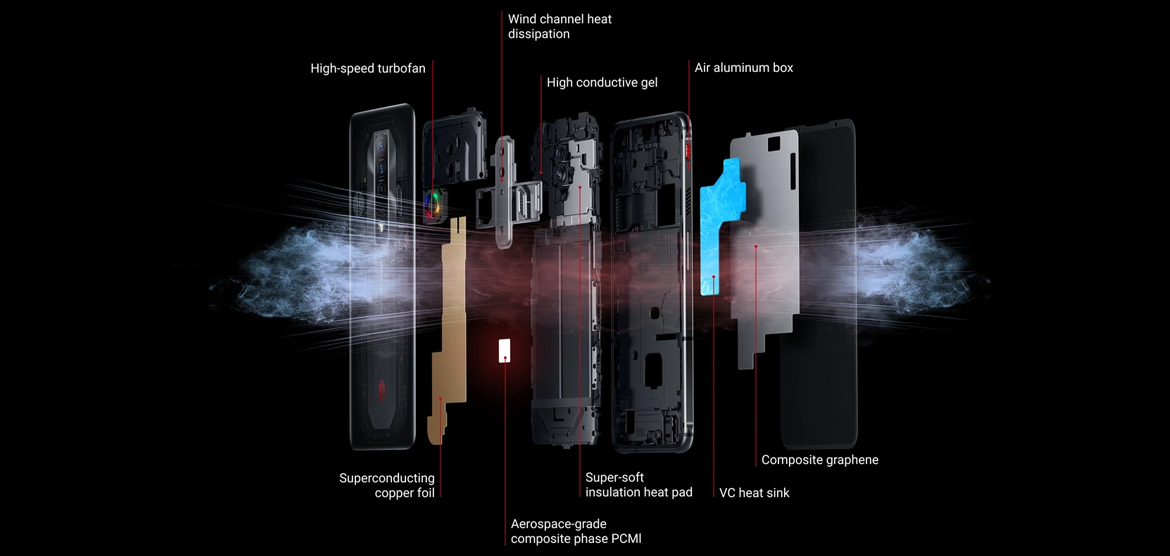 The special air channel discharges the heat from the REDMAGIC7 quickly. REDMAGIC 7’s rear cover includes an added air intake which greatly enhances the air volume and further enhances the heat dissipation performance.